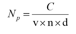 : somme des colonies comptées sur l’ensemble des boîtes de Pétri sélectionnées et exploitables (boites provenant de deux dilutions successives et dont au moins une contient 15 colonies ; seules les boites correspondant à un nombre d’UFC inférieur ou égal à 300 sont considérées dans le calcul).- Calculer la concentration « Np » (UFC/mL) en microorganismes cultivables dans la prise d’essai de l’échantillon à l’aide de la formule suivante :