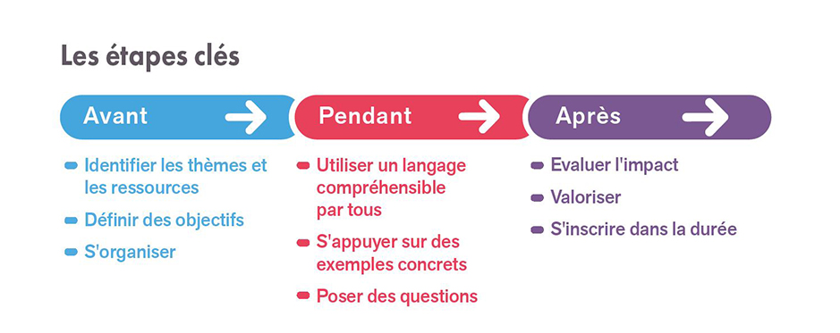 S’inscrire dans la durée : les actions d’information et de sensibilisation doivent avoir lieu de façon régulière et répétée pour induire des changements durables.
