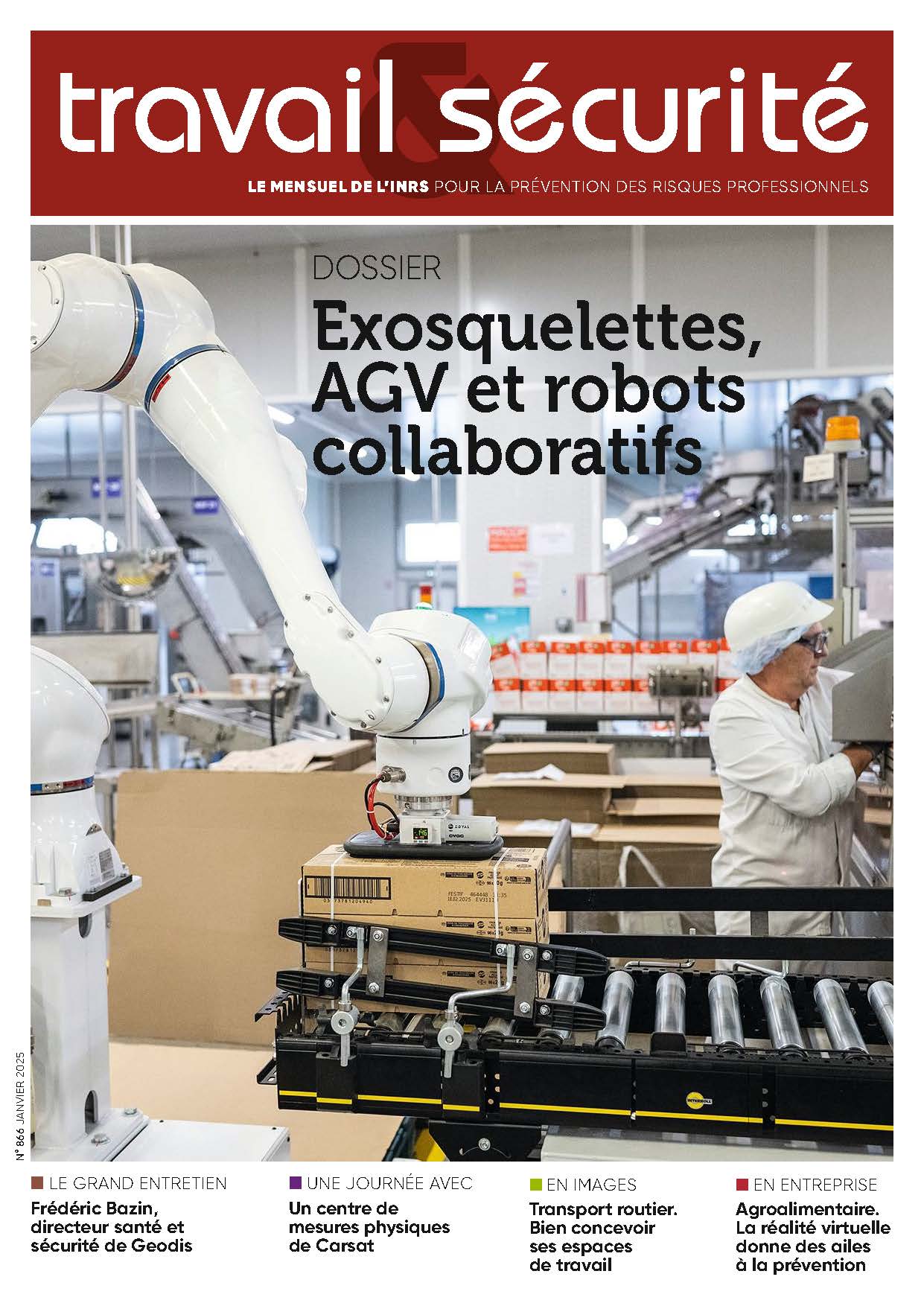 Le numéro 866 du magazine Travail & Sécurité est paru. Le dossier du mois est consacré aux « Exosquelettes, AGV et robots collaboratifs ». Au sommaire, découvrez un entretien avec Frédéric Bazin, directeur santé et sécurité de Géodis. Il nous explique comment s’organisent la santé et la sécurité au sein de ce groupe présent dans plus de 60 pays. Un « En Images » au sein des entreprises de transport Guivarc’h et Pelé qui ont orchestré pour l’une la conception de nouveau bureaux, pour l’autre, une plateforme logistique redimensionnée.