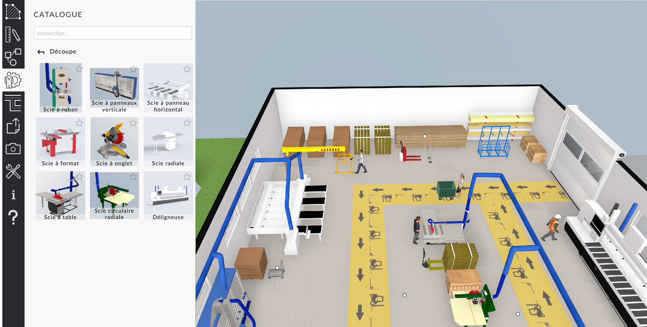 Tout comme les applications déjà disponibles pour d’autres secteurs d’activité (boulangerie -pâtisserie – glacerie, entretien, réparation automobile et carrosserie industrielle, logistique, hôtellerie – restauration, travail de bureau et mareyage), « Mavimplant Atelier bois propose aux utilisateurs de concevoir leur espace de travail au sein d’une maquette 3D, en y intégrant des équipements souvent rencontrés dans ces ateliers (scie, raboteuse, dégauchisseuse, toupie, cadreuse…) ainsi que des exigences de sécurité associées», explique Remiel Feno, responsable d’études à l’INRS.