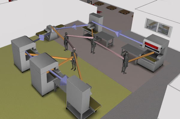 Il offre notamment la possibilité de visualiser les flux et d’identifier des zones homogènes en termes d’activité et de personnel, afin d’éviter au mieux les croisements et la coactivité. La possibilité de représenter différentes voies de circulation dont des voies piétons à sens unique, facilite en outre la séparation des déplacements humains.