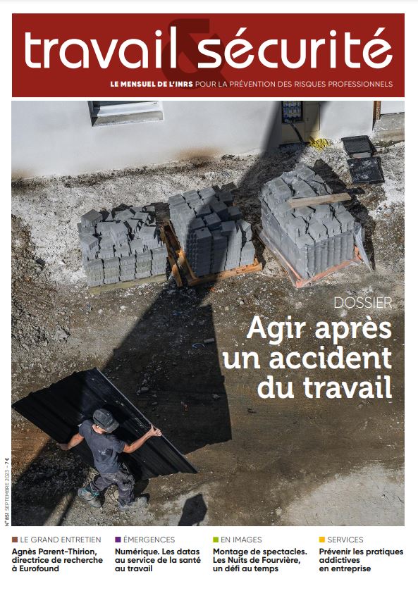 Le numéro 851 du magazine Travail & Sécurité est paru. Le dossier du mois a pour thématique « Agir après un accident du travail ». Au sommaire, découvrez un entretien avec Agnès Parent-Thirion, directrice de recherche à la Fondation européenne pour l’amélioration des conditions de vie et de travail (Eurofound) ou encore un reportage « En Images » au cœur du festival des Nuits de Fourvière à Lyon. .
