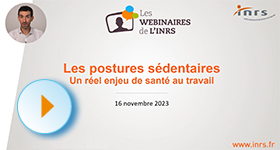 Les postures sédentaires. Un réel enjeu de santé au travail (anim 388) Cette conférence en ligne propose une vision d'ensemble de ce que sont les postures sédentaires, des risques qui y sont associés et des mesures à mettre en oeuvre.