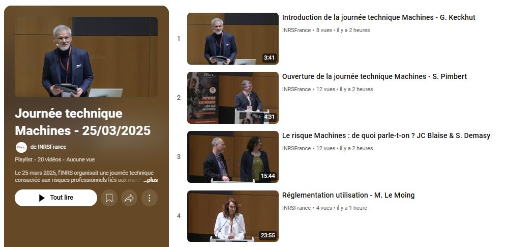 Le 25 mars 2025, l’INRS organisait une journée technique consacrée aux risques professionnels liés aux machines (écrasement, coupures, bruit, vibrations, TMS…) et à leur prévention à chacune des étapes du cycle de vie d’une machine, de la conception à la modification en passant par l’acquisition, l’exploitation et la maintenance.