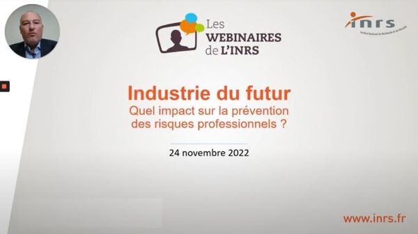 Animé par Jean-Christophe Blaise et Benjamin Paty, experts INRS, ce webinaire s’adressait aux acteurs de la prévention des risques professionnels : chargés de prévention, services de santé au travail, employeurs. Cette conférence constitue une synthèse des travaux menés par l’INRS sur la thématique de l’Industrie du futur, sur la période 2017-2022.