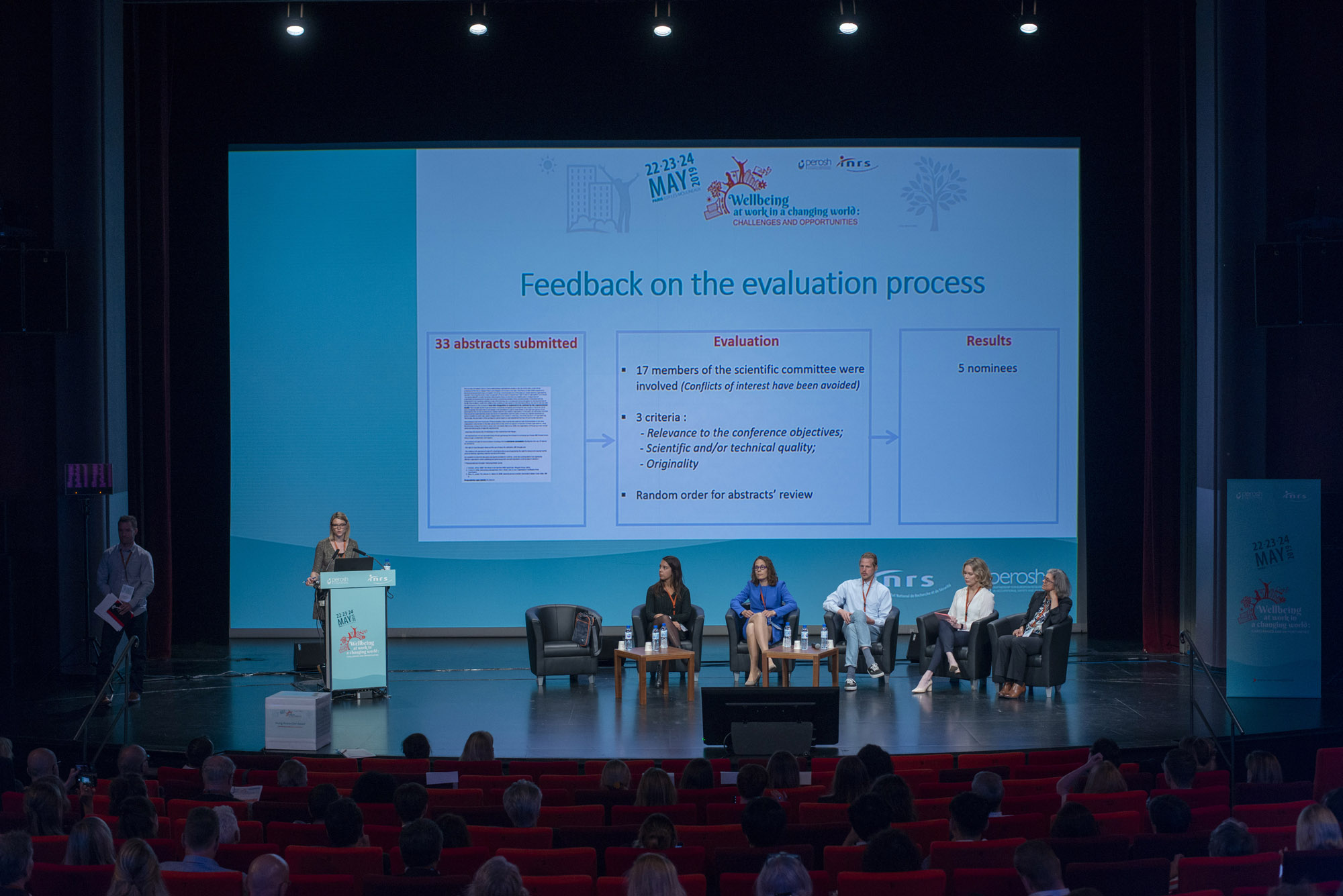 98 communications orales, 39 posters, 4 symposiums, 2 ateliers de chercheurs, experts et praticiens en sciences humaines et sociales et plus largement acteurs de la santé au travail du monde entier ont été présentés durant ces 3 jours. Par ailleurs, 5 jeunes chercheurs, issus de 5 instituts Perosh*, sont venus renforcer le comité scientifique international. Ils ont instruit le choix du thème général de la conférence et des thèmes abordés par les 5 orateurs invités. Un concours a récompensé la meilleure communication « Jeune chercheur » (cf. Encadré).