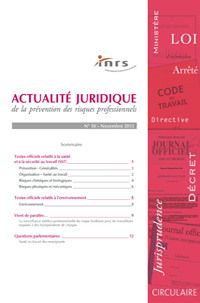 Chaque mois, l’INRS propose dans un bulletin téléchargeable une sélection de textes officiels intéressant l'hygiène et la sécurité du travail parus récemment en France et en Europe. Présentation du bulletin numéro 10 de novembre 2013.