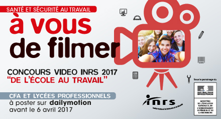L’Institut National de Recherche et de Sécurité (INRS) organise pour la 5e année consécutive le concours « Santé et sécurité au travail : De l’école au travail, à vous de filmer », destiné aux élèves des lycées professionnels et aux apprentis des CFA dépendant de l’Education nationale. L’objectif de ce concours, placé sous le parrainage du ministère de l’Education nationale, est de sensibiliser les jeunes aux risques auxquels ils sont exposés lors de leurs premiers pas dans le monde professionnel (périodes de stage ou d’alternance en entreprise).