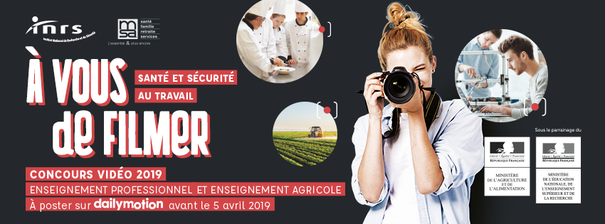 L’Institut national de recherche et de sécurité (INRS) lance pour la 7e année consécutive le concours « Santé et sécurité au travail : de l’école au travail, à vous de filmer », destiné aux élèves des lycées professionnels et des centres de formation d’apprentis (CFA). Ce concours vidéo 2018-2019 est organisé par l’INRS en partenariat avec la MSA sous le parrainage des ministères chargés de l’Education nationale et de l’Agriculture.