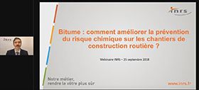 Webinaire animé par Cosmin Patrascu, expert INRS, sur la prévention du risque chimique sur les chantiers de construction routière, notamment lors de l'utilisation de bitume.