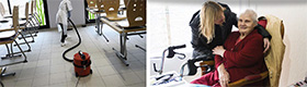 Les quatre situations de travail illustrées portent sur : - deux domiciles, - les chambres et les salles de bain en établissement, - la lingerie et les espaces communs en établissement.