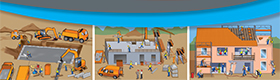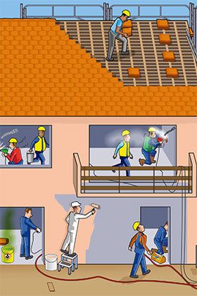 Les situations de travail illustrées portent sur : - le terrassement, - le gros-oeuvre et - le second oeuvre.