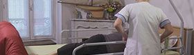 Une série de dix films courts présente la démarche d'aide au transfert visant à supprimer le port de charge délétère dans les manutentions de personnes dans l'activité de soin : aider une personne à remonter dans son lit, à se lever de son fauteuil, s'y asseoir...