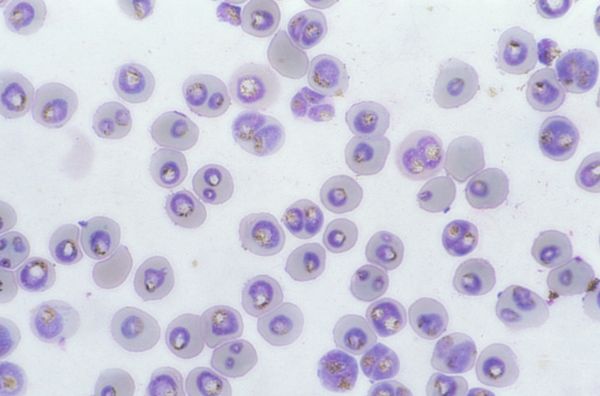 Dans le sang humain, on peut retrouver différentes formes du parasite : les trophozoïtes (toujours présents) et, plus rarement, les gamétocytes et les schizontes (exceptionnels pour P. falciparum).