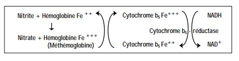L'effet des nitrites sur l'hémoglobine est réversible. La méthémoglobine est rapidement et complètement réduite en hémoglobine, in vitro, en présence de bleu de méthylène et, in vivo, par la NADH-cytochrome-b5 réductase (NADH-méthémoglobine réductase) des érythrocytes [19, 20].