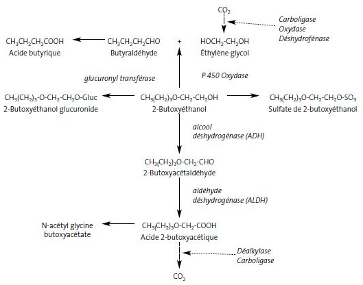 Le métabolisme du 2-butoxyéthanol a été étudié en détail chez le rat (voir schéma ci-dessous).