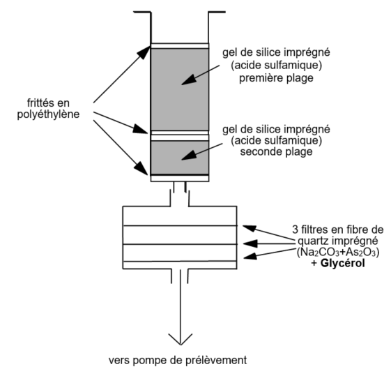 Analyse de la fraction particulaire uniquement si utilisation de la cassette seule et pour le dosage des composés chlorés sous forme de sels, le trichlorure d'azote n'est pas retenu sur ce filtre.