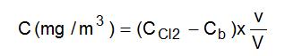 CCl2 (mg/L) concentration de l'échantillon en équivalent-chlore Cb (mg/L) concentration moyenne des blancs de laboratoire en équivalent-chlore V (L) volume d'air prélevé v (mL) volume de reprise des échantillons Cas des filtres : analyse chromatographique