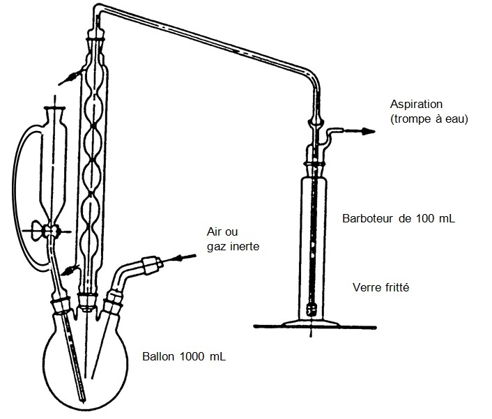 - Introduire dans le barboteur 25 mL de solution d’hydroxyde de sodium à 4 g/L.