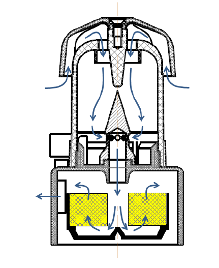 Photo d'un ensemble CIP10-T et représentation schématique du sélecteur de la fraction thoracique, avec sa coupelle rotative en place.