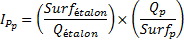 - Remarque : IPp est calculé en dopant un tube mulit phases avec des quantités connues et proches des deux composés. Le facteur de proportionnalité Ip pour le porduit p est calculé à l'aide de la formule suivante :