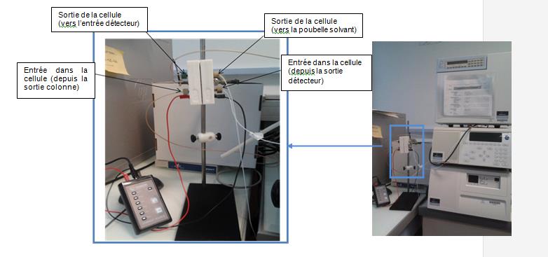 Pour assurer un temps d’analyse optimal du dérivé formé, la longueur de la tubulure entre la cellule de dérivation et l’entrée du détecteur doit être déterminée en fonction de son diamètre interne et du débit. Elle sera par exemple, de 34 cm si le diamètre interne est de 0,5 mm avec un débit de 1 mL/min.