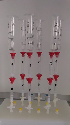 La pesée du volume récupéré permet de vérifier que tout le méthanol a bien été élué des colonnes IA.