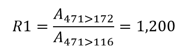 La confirmation de l’identité de l’allergène dans l’extrait nécessite la comparaison des ratios de réponse pour chaque transition avec ceux obtenus pour la substance pure analysée dans les mêmes conditions :