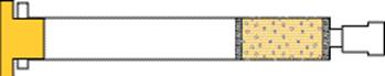 Les cartouches sont ensuite remplies d'une plage de gel de silice imprégné maintenue par des frittés en teflon.