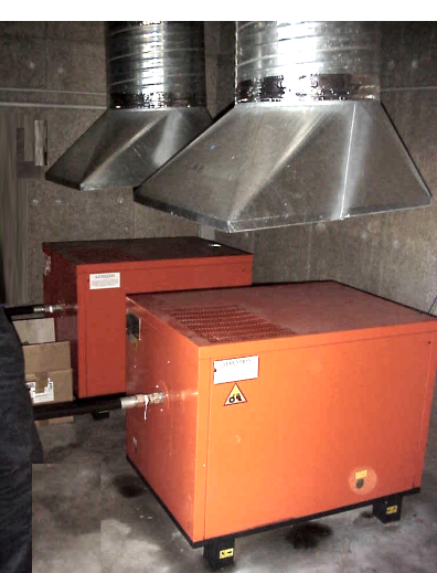 Lors de la construction d’un nouveau site, le choix s’est porté sur des compresseurs moins bruyants par nature (compresseurs à vis). Deux compresseurs de 15 kW, 8 bars, avec un débit de 2 m3/min, donnés pour 71 dB(A) chacun, ont remplacé les anciens.