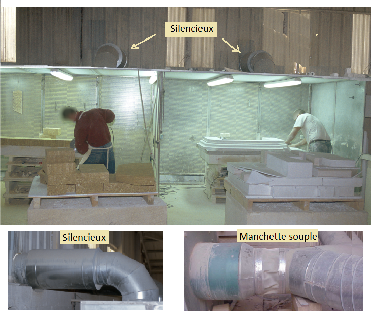 Le bruit généré par l’installation d'un dispositif de ventilation pour le captage des poussières dans deux cabines de taille de la pierre est trop élevé.