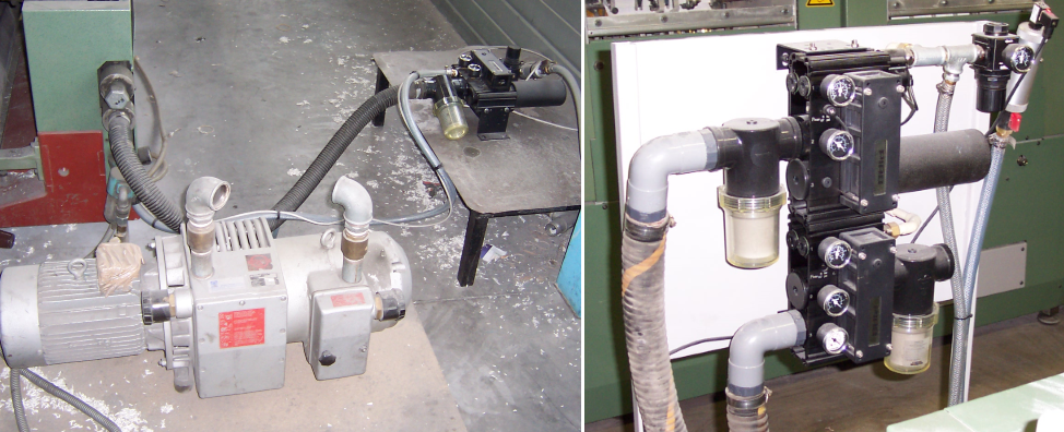 Les pompes à vides standard (rotatives à moteur thermique) sont remplacées par des pompes à vide à effet Venturi. Connectées au réseau d’air comprimé du local, ces pompes utilisent la pression du réseau pour générer par effet Venturi l’aspiration nécessaire aux ventouses.