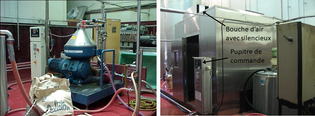 Une centrifugeuse servant à clarifier le vin dans une unité d'embouteillage pollue l'ambiance sonore de la cave dans laquelle elle est installée. Les niveaux sonores sont de 92dB(A) en phase de centrifugation et de 97dB(A) en phase de chasse.