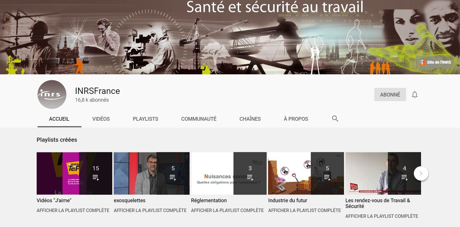 Mettre les productions audiovisuelles de l’INRS à disposition du plus grand nombre, tel est l’objectif de la chaîne santé et sécurité au travail de l’INRS, INRSFrance sur YouTube.