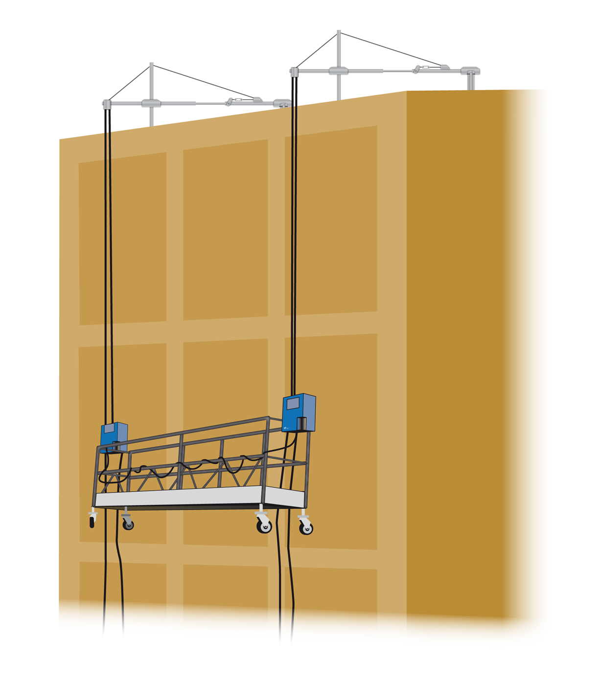 Les plates-formes de travail suspendues anciennement dénommés « échafaudages volants » sont destinées aux travaux en façade des ouvrages. Elles sont constituées d’une plate-forme qui est suspendue par des câbles à des supports positionnés en partie haute de l’ouvrage.