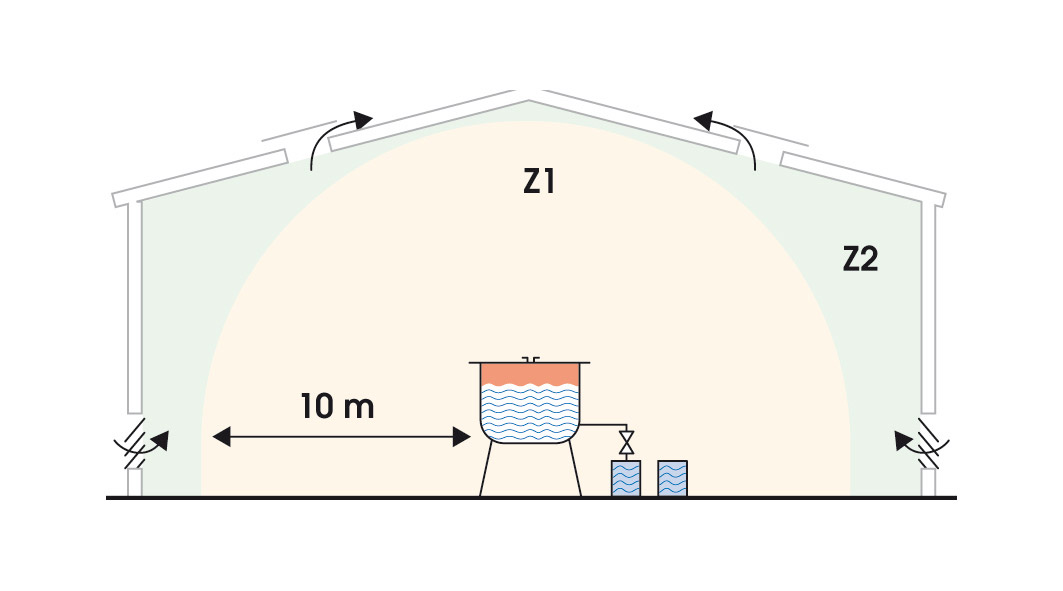 En général, une zone 0 sera présente à l’intérieur des réservoirs, des canalisations, des récipients…
