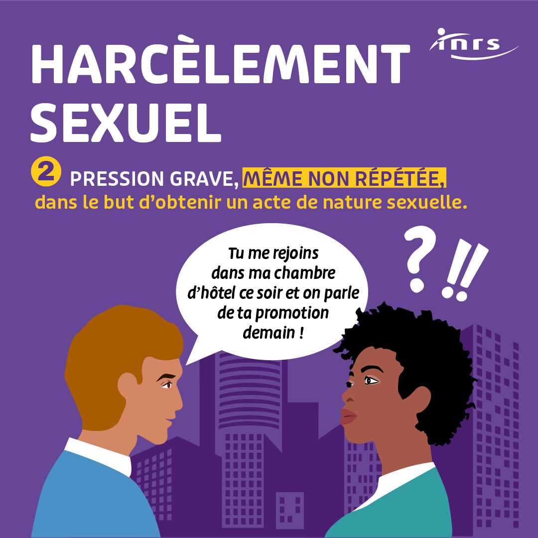 En 2016, l’enquête « conditions de travail » de la Dares a montré que 0,7 % des salariés ont fait l’objet de propositions à caractère sexuel de façon insistante au cours des 12 mois précédents et que 2,8 % des salariés ont fait l’objet de propos obscènes ou dégradants. Les femmes sont plus exposées que les hommes.