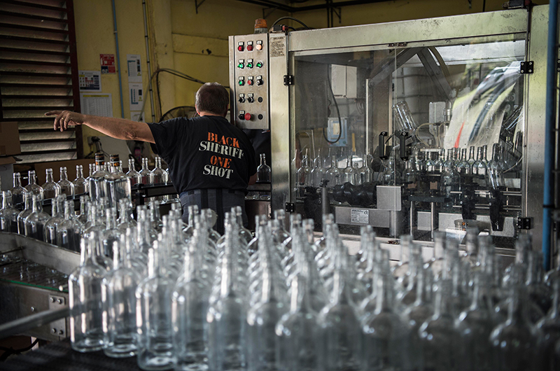 Un opérateur travaille sur une chaîne de production de bouteilles et pour cela est amené à se déplacer sur des estrades le long de cette chaîne. Ces estrades ont été ôtées la veille par des opérateurs de maintenance qui n’ont pu les remettre en place puisqu’ils ont été appelés pour une intervention urgente. Les estrades ôtées ayant disparu, de nouvelles ont été mises en place par des surveillants. Celles-ci ne sont pas jointives.  Suite à un changement de moule qui réduit temporairement la qualité des bouteilles, plusieurs d’entre elles se cassent dans le carrousel. L’opérateur en voulant dégager le carrousel, pose le pied entre les estrades et se tord la cheville.
