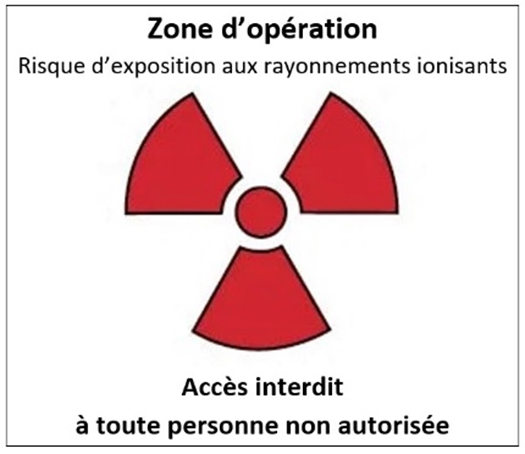 Zone contrôlée rouge, danger d’irradiation et de contamination