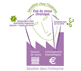 En France, le coût social du stress (dépenses de soins, celles liées à l’absentéisme, aux cessations d’activité et aux décès prématurés) a été estimé en 2007 entre 2 et 3 milliards d’euros (étude INRS et Arts et métiers ParisTech).